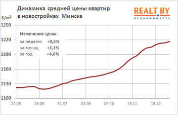 С положительной ценовой динамикой встретил 2018 год и первичный рынок. Средняя цена квартир в новостройках Минска выросла за неделю на 0,2% и составила 1217 $/м2.