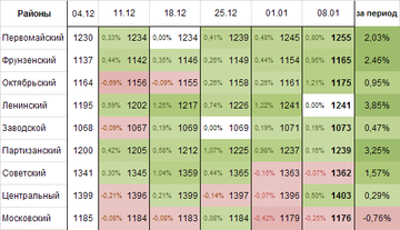 Изменение цен в районах Минска на 8 января выглядит следующим образом: