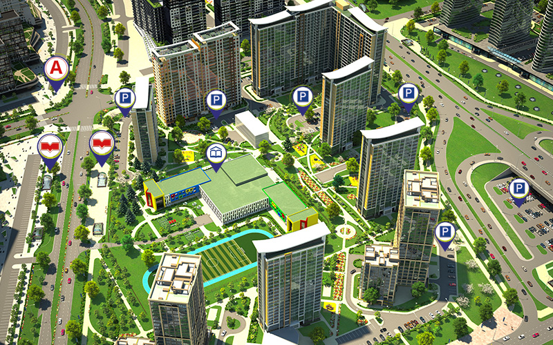 С восточной стороны квартала находится прогулочная зона — зелёный бульвар, который, несомненно, станет любимым местом для романтических или семейных прогулок.