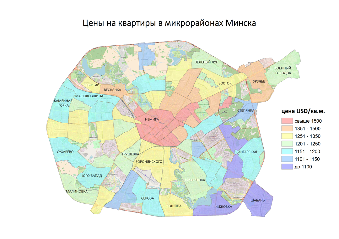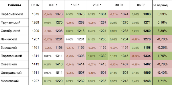 Изменение цен в районах Минска на 6 августа выглядит следующим образом: