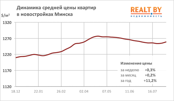 24475 718За неделю, c 30 июля по 6 августа 2018 года, информационно-аналитическим центром Realt.by были отмечены следующие изменения на первичном и вторичном рынках недвижимости города Минска: