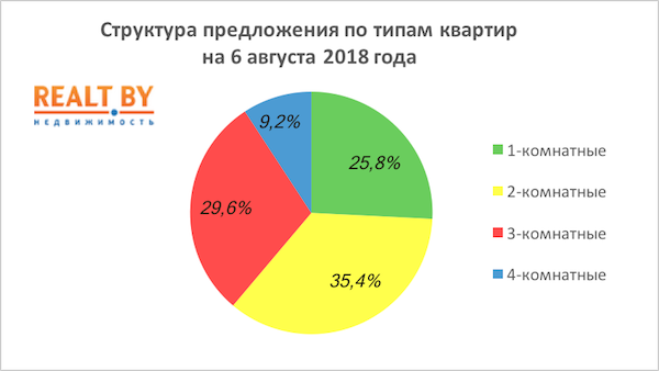 Структура предложения по типам квартир выглядит на 6 августа следующим образом: