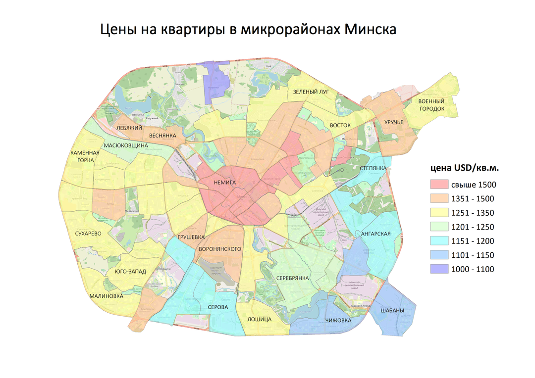 Изменение цен в районах Минска на 7 января выглядит следующим образом: