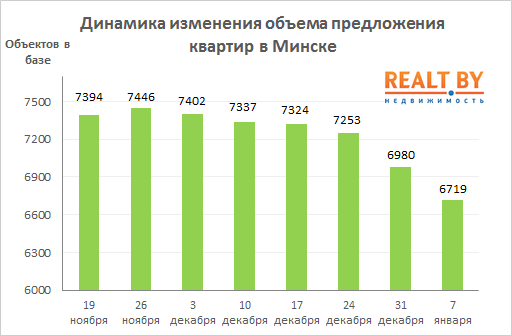 13594 141За неделю, c 31 декабря по 7 января 2019 года, информационно-аналитическим центром Realt.by были отмечены следующие изменения на первичном и вторичном рынках недвижимости города Минска: