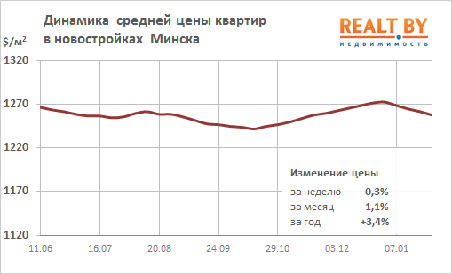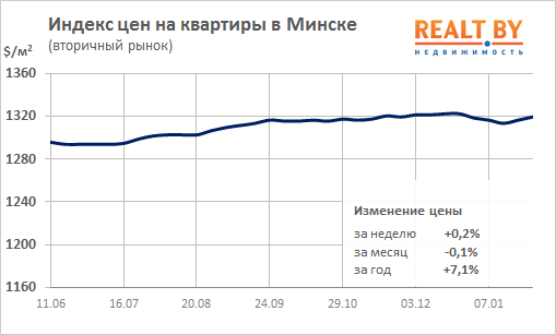 16305 184За неделю, c 21 по 28 января 2019 года, информационно-аналитическим центром Realt.by были отмечены следующие изменения на первичном и вторичном рынках недвижимости города Минска:
