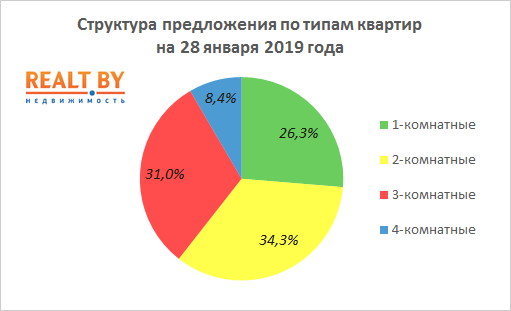 Структура предложения по типам квартир выглядит на 28 января следующим образом: