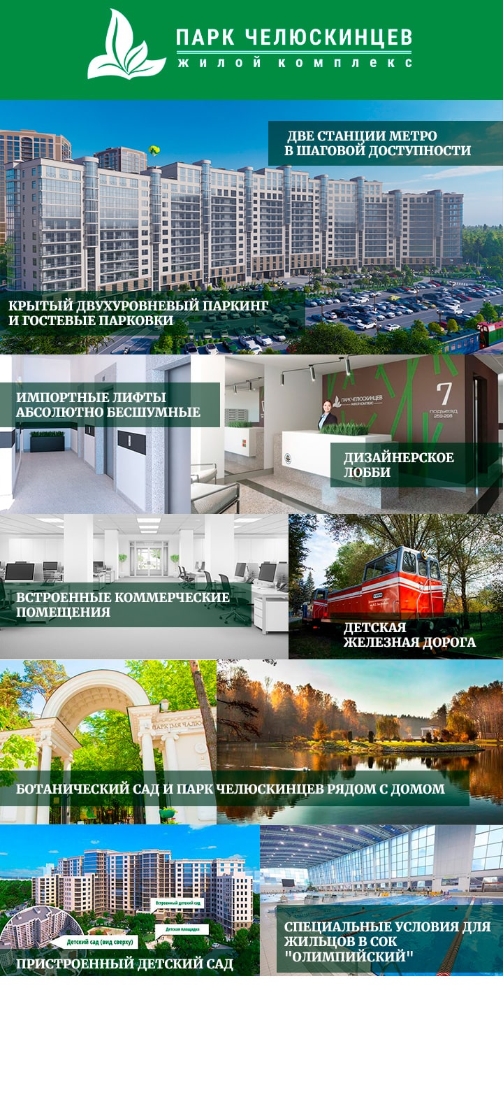 Жилой комплекс «Парк Челюскинцев« собрал в себя все преимущества квартир комфорт-класса — это и удобные планировки, и уникальная экология, и сложившаяся инфраструктура района в центре города. А еще это дружелюбная среда для безопасного и уютного семейного образа жизни в Минске.