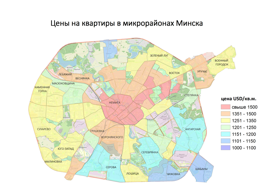 Изменение цен в районах Минска на 25 марта выглядит следующим образом: