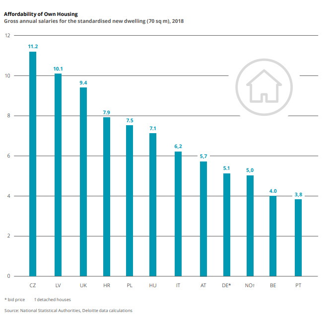 Наиболее доступное жилье можно найти в Португалии, где вам нужно экономить в среднем только 3,8 года, чтобы купить новое жилье. За Португалией тесно следуют Бельгия (4 года). Тем не менее, разница между валовой и чистой заработной платой в Бельгии больше, чем в большинстве других стран. Также собственное жилье является относительно доступным в Норвегии, Германии и Австрии. Там нужно экономить от 5 до 6 лет.