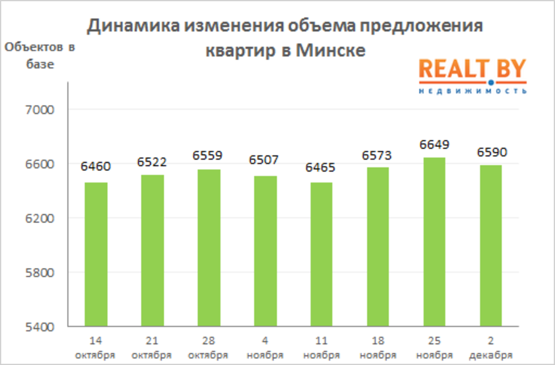 10528 64За неделю, c 25 ноября по 2 декабря 2019 года, информационно-аналитическим центром Realt.by были отмечены следующие изменения на первичном и вторичном рынках недвижимости города Минска: