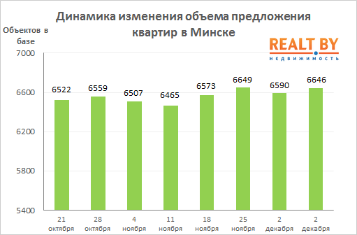 10099 61За неделю, c 2 по 9 декабря 2019 года, информационно-аналитическим центром Realt.by были отмечены следующие изменения на первичном и вторичном рынках недвижимости города Минска: