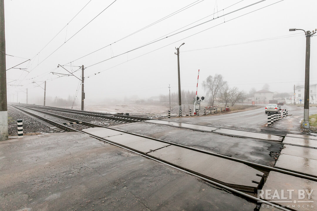 3468Железная дорога делит Колодищи на две части, которые связаны между собой единственным переездом шириной в одну полосу в каждую сторону. Из-за интенсивного движения пассажирских и грузовых поездов железнодорожный переезд в среднем закрыт 17 часов в сутки, а в утренние и вечерние часы пик простоять в пробке можно до получаса.