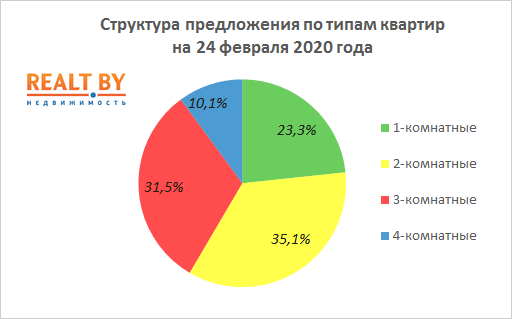 Структура предложения по типам квартир выглядит на 24 февраля следующим образом: