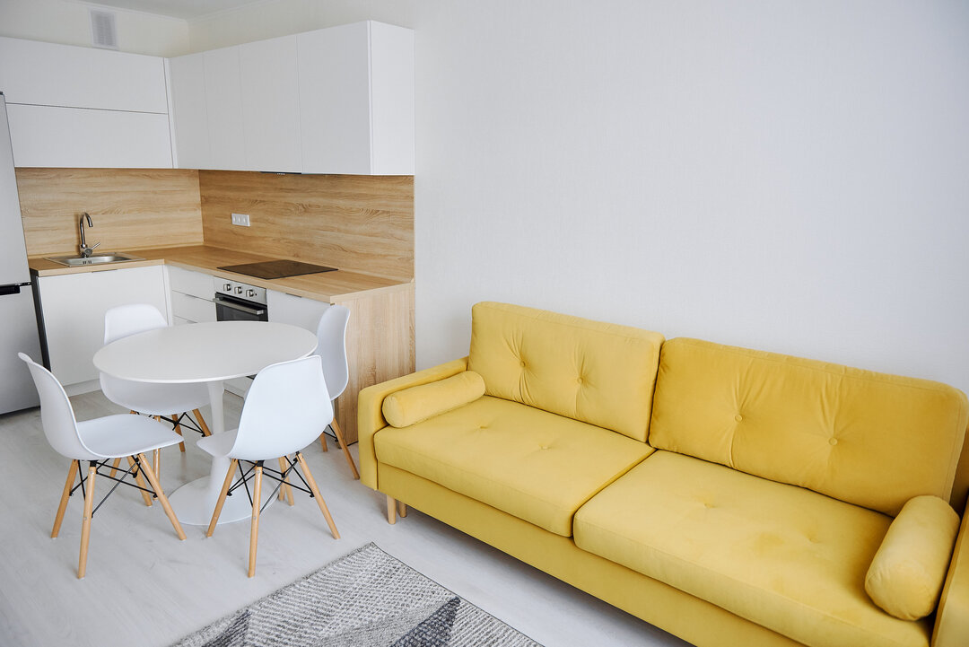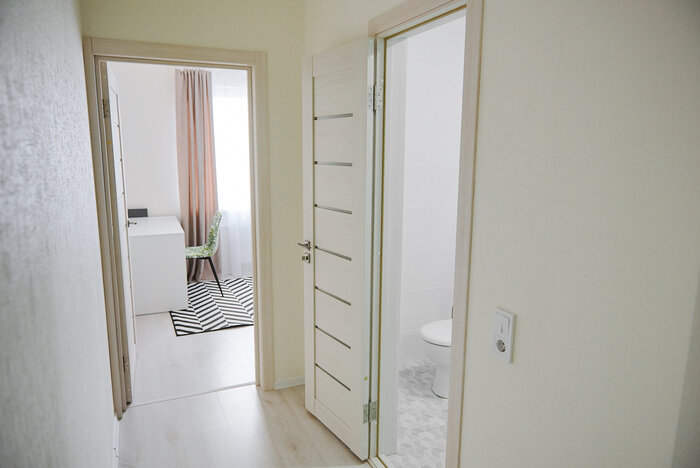 Среди вариантов — полностью меблированные квартиры-студии, однокомнатные, двухкомнатные и трехкомнатные квартиры. В каждой квартире сделана чистовая отделка от застройщика, установлена новая мягкая и корпусная мебель, кухня, сантехника и вся необходимая новая бытовая техника. В помещениях выполнен скандинавский дизайн — светлая отделка с вкраплением ярких элементов.