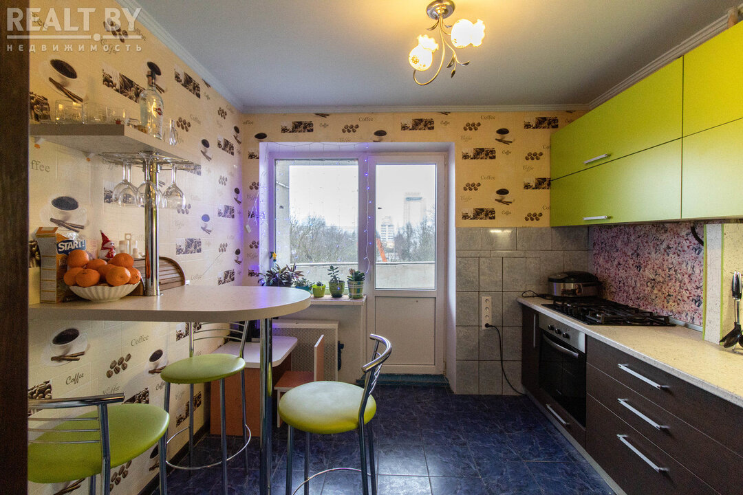 Одна из квартир, выставленных в продажу, находится в 18-этажном доме по адресу: ул. Калиновского, д. 54/2. В ней три балкона и большая лоджия. Площадь «трешки» — почти 67 квадратных метров, по СНБ — 71 кв.м. Это монолитный дом с улучшенной тепло- и звукоизоляцией. Все комнаты изолированы, смежная стена с соседями только одна. Собственник отмечает, что планировка позволяет объединить гостиную с кухней и прихожей (не проверяли — не знаем, — прим. ред.).