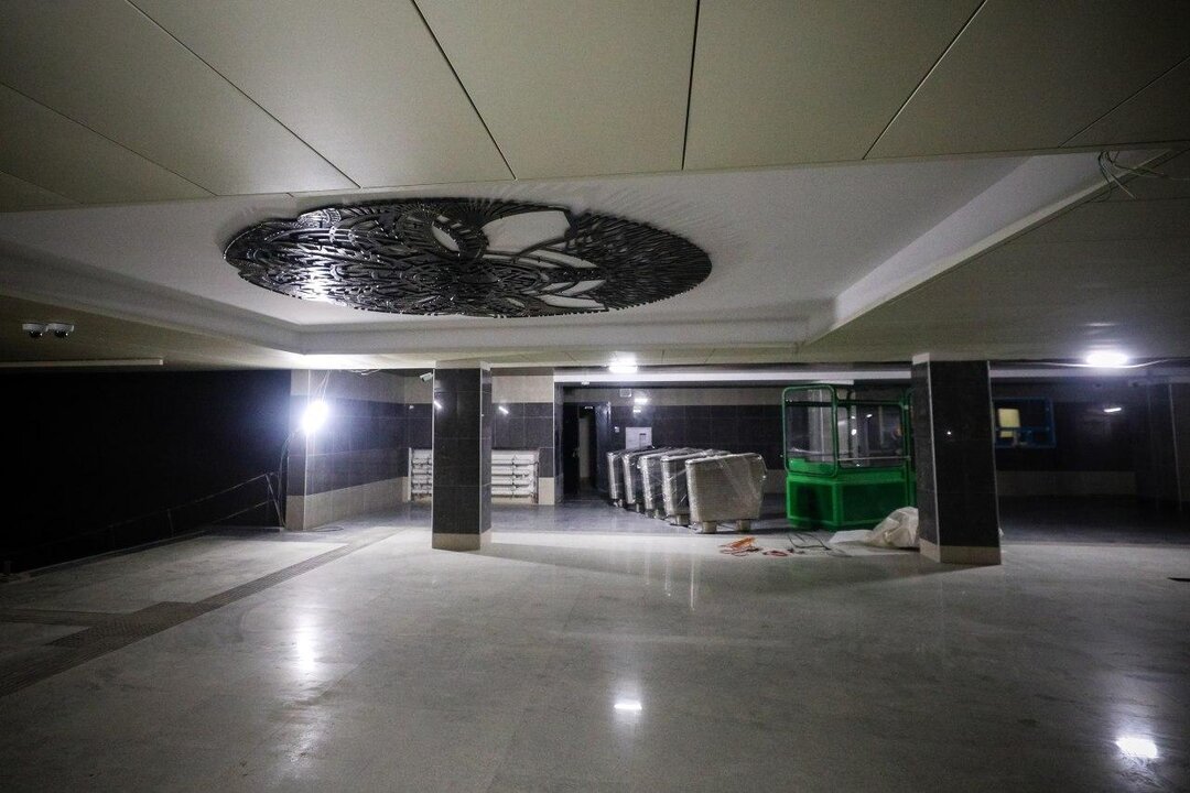 Здесь уже завершены отделочные работы. Сейчас рабочие занимаются художественным оформлением и наладкой систем безопасности, видеонаблюдения.