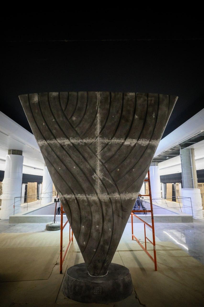 Основой оформления и декора станции стала тема путешествий. На платформе уже собрали скульптуру «Древо дорог», предстоит еще покраска.