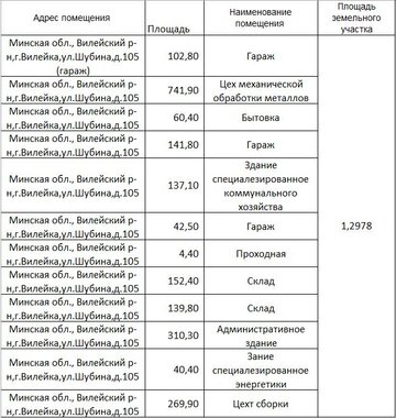 г. Вилейка, ул. Шубина, 105 | 1,3 га | 560 000 | 25 лет | 5,5% | 28 000 | 4230 |