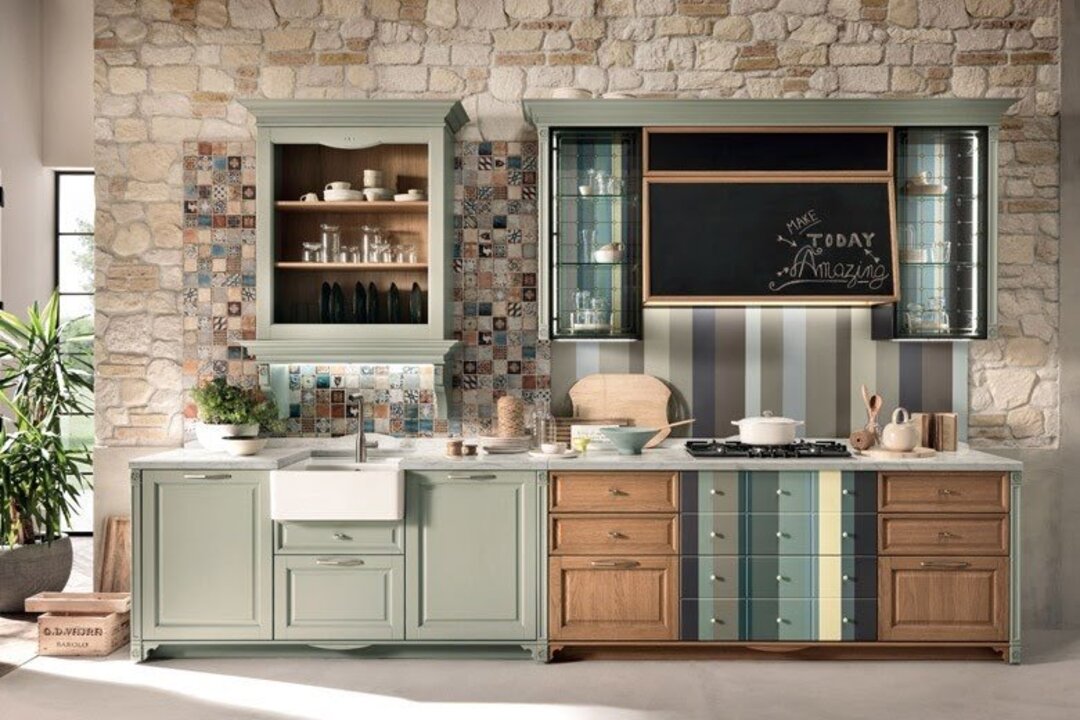 Дизайн интуитивной кухни не обязательно выполняет пожелания минимализма, тенденции, популярной уже несколько лет. Модным веянием 2020 года становится винтаж или так называемый стиль Grandmillenial — деревенский шик. Не забудьте о luxury и вспомните о сельских традициях — получится то, что надо. Как выглядит такая кухня? Открытые шкафы переливаются контрастными цветами, а дубовые тумбочки напоминают о лесной свежести.