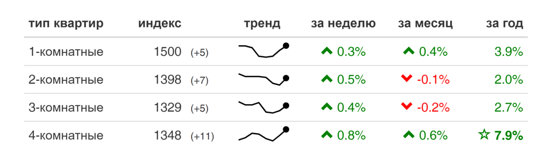 Индекс цен вторичного рынка жилья растёт вторую неделю подряд. На этот раз он поднялся на 0.4% и составил 1397 $/м2.