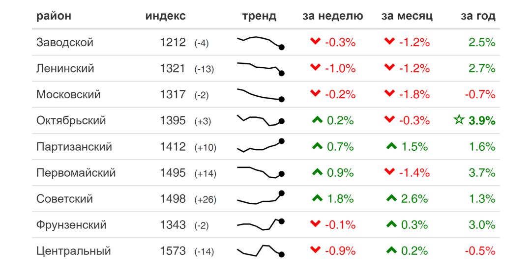 Брест — 811 $/м2 (+0.5%), Витебск — 637 $/м2 (+0.6%), Гомель — 629 $/м2 (-0.2%), Гродно — 739 $/м2 (без изменений), Могилев — 646 $/м2 (+0.5%).