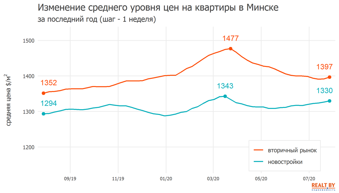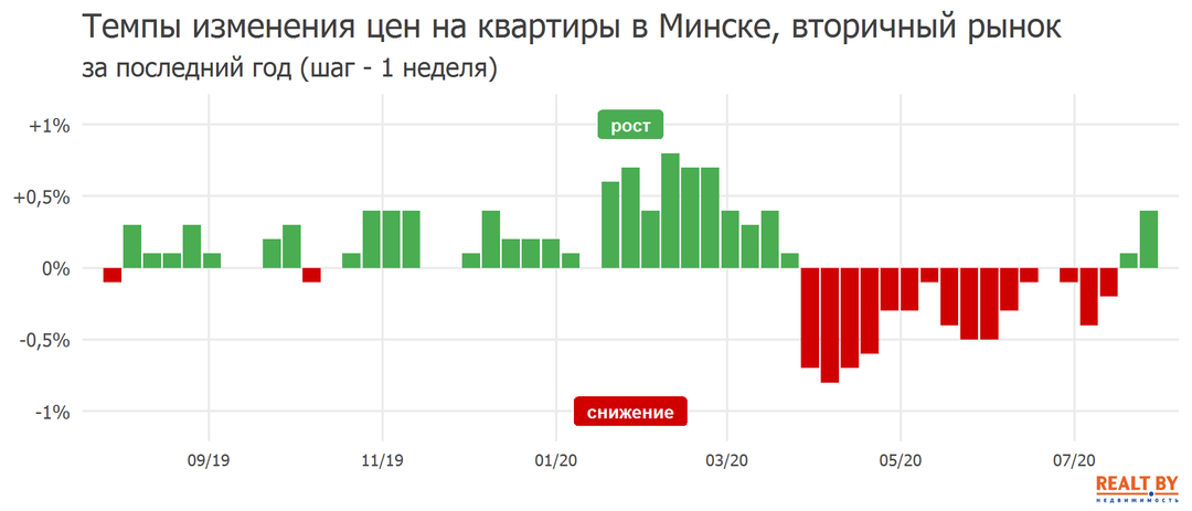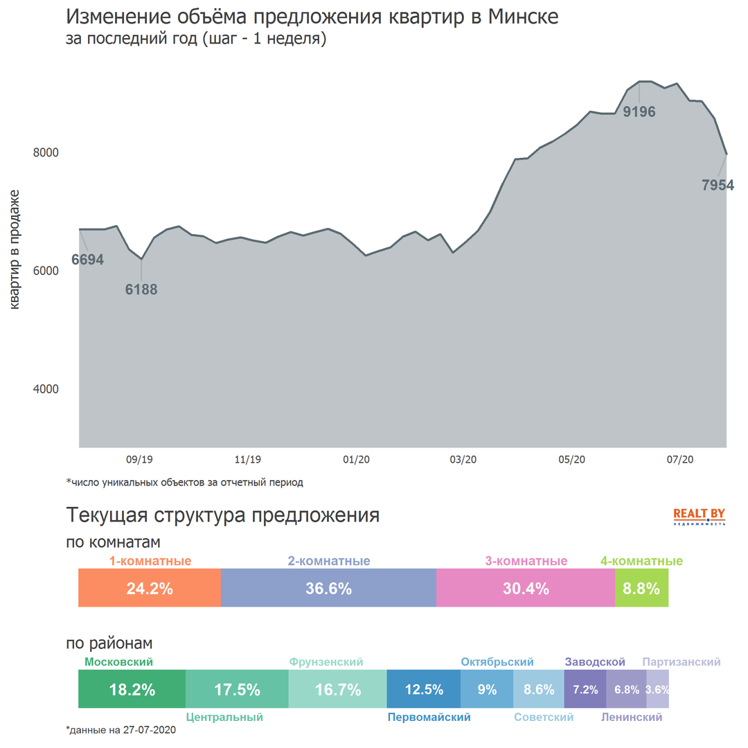 23292 532За неделю, с 20 по 27 июля 2020 года, аналитическим центром Realt.by были отмечены следующие изменения на рынке жилья города Минска: