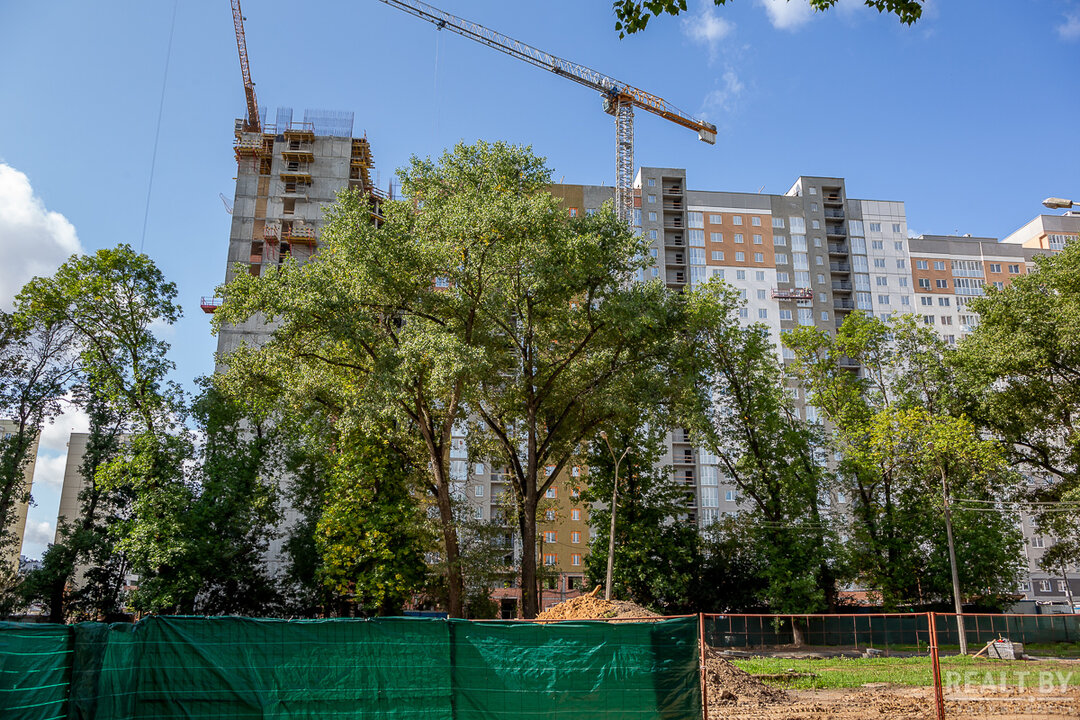 УКС Ленинского района доводит до ума территорию готового дома по Язепа Дроздовича, 6.