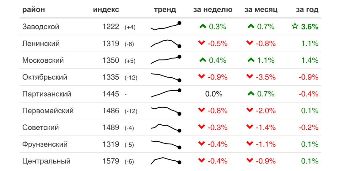 Отрицательная динамика цен наблюдается на вторичном рынке жилья белорусской столицы на протяжении 4 недель подряд. Примечательно, что на минувшей неделе локомотивом общего снижения индекса были дешевые квартиры. Разница в цене между объявлениями, где цены снизили, и где оставили неизменными, составила почти 100 $/м2.