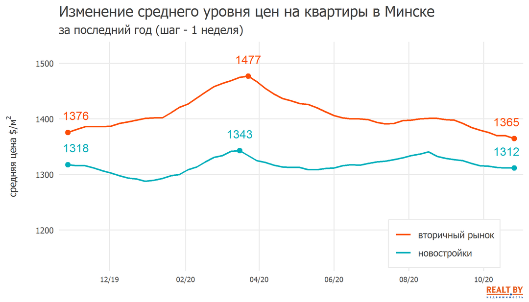 24767 521За неделю, с 19 по 26 октября 2020 года, аналитическим центром Realt.by были отмечены следующие изменения на рынке жилья города Минска: