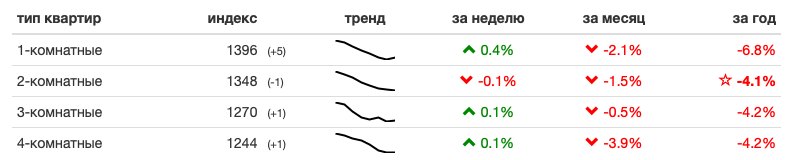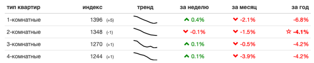 Динамика объёма предложения сменила направление: количество выставленных на продажу объектов за последнюю неделю снизилось на 4.4%. Наиболее ощутимым был отток в сегменте 1-комнатных квартир, которых за 7 дней стало меньше сразу на 8%. На 4% сократилось предложение «трёшек», число 2- и 4-комнатных уменьшилось на 2%.