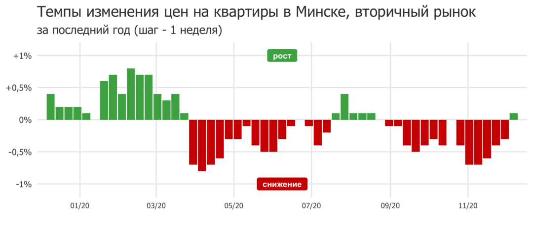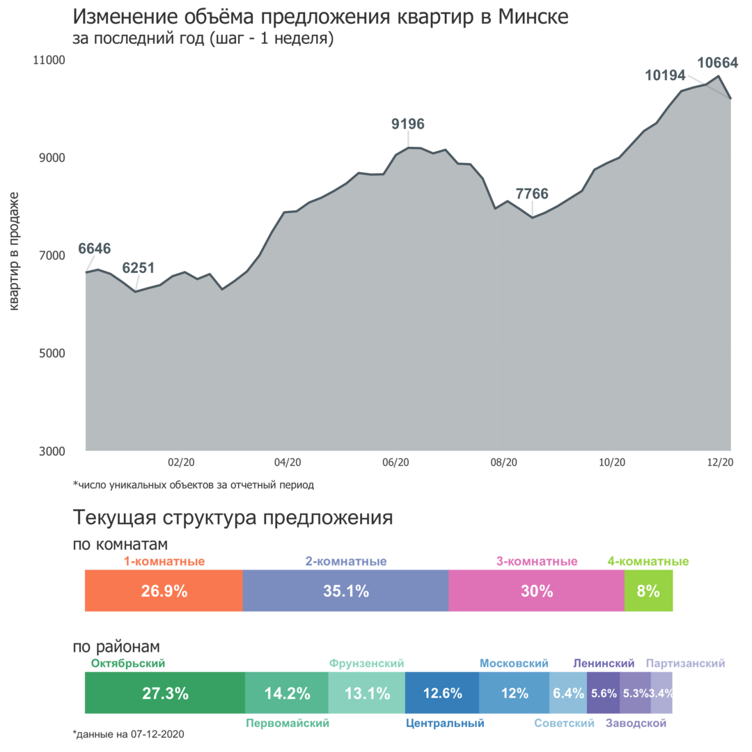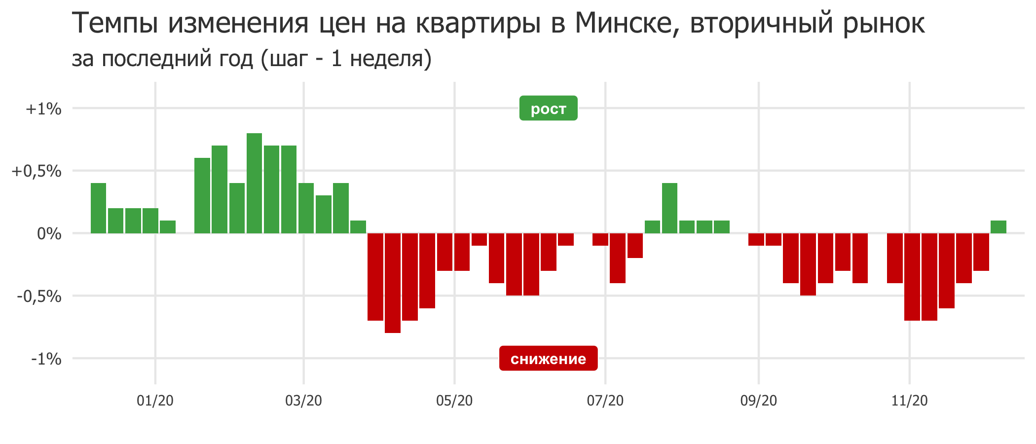 26712 800За неделю, с 30 ноября по 7 декабря 2020 года, аналитическим центром Realt.by были отмечены следующие изменения на рынке жилья города Минска: