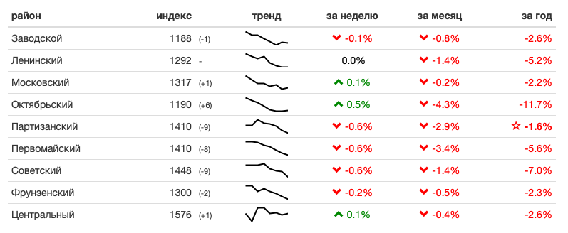 Брест — 818 $/м2 (+0.1%), Витебск — 619 $/м2 (-0.3%), Гомель — 625 $/м2 (+0.2%), Гродно — 722 $/м2 (+0.3%), Могилев — 654 $/м2 (-0.6%).