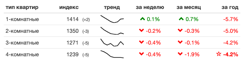 Индекс цен вторичного рынка жилья за последнюю неделю снизился на 0.1% и составил 1334 $/м2.