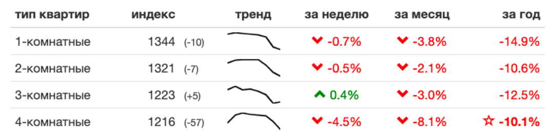 Индекс цен вторичного рынка жилья за неделю снизился на 0.6% и составил 1291 $/м2.