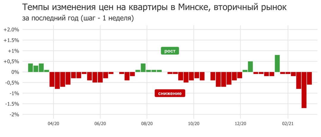31492 667За неделю, с 22 февраля по 1 марта 2021 года, аналитическим центром Realt.by были отмечены следующие изменения на рынке жилья города Минска: