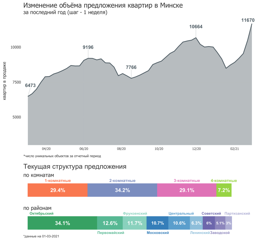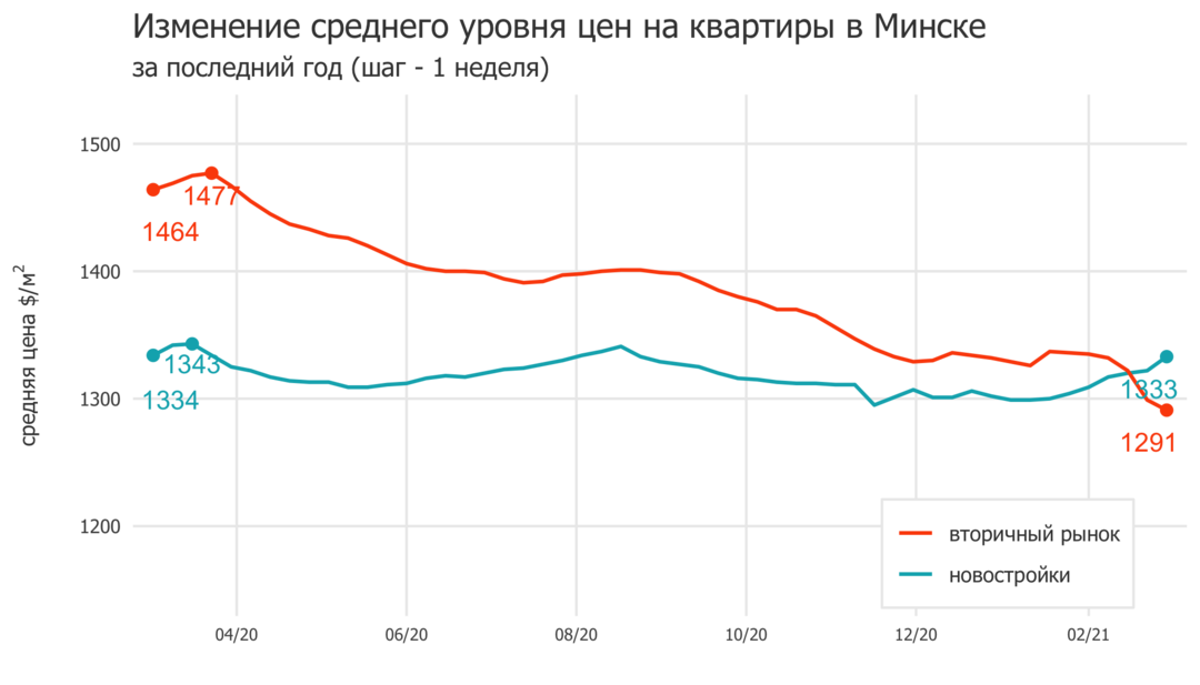 Мониторинг цен предложения квартир в Минске за 22 февраля — 1 марта 2021 года