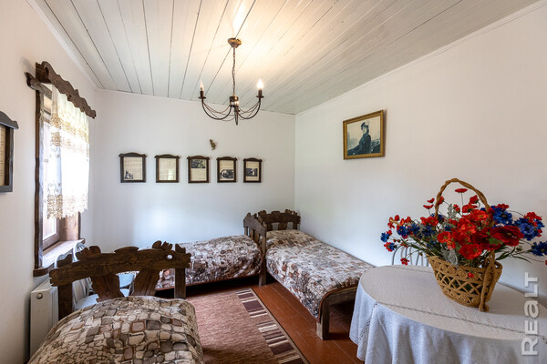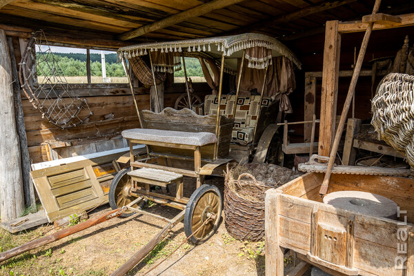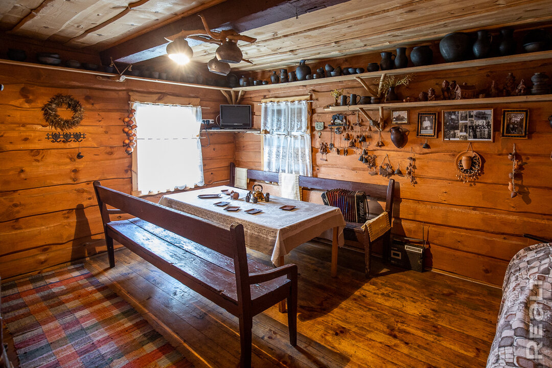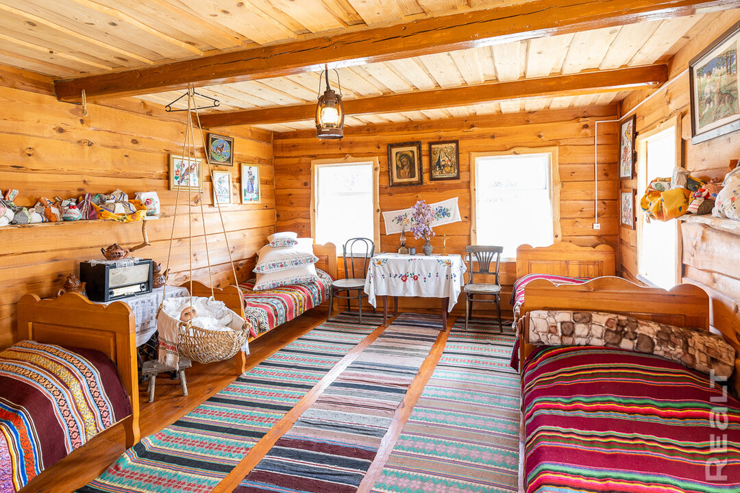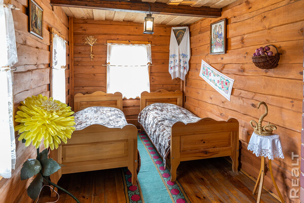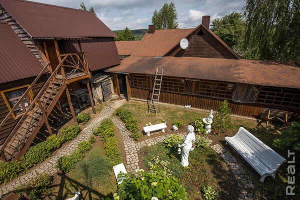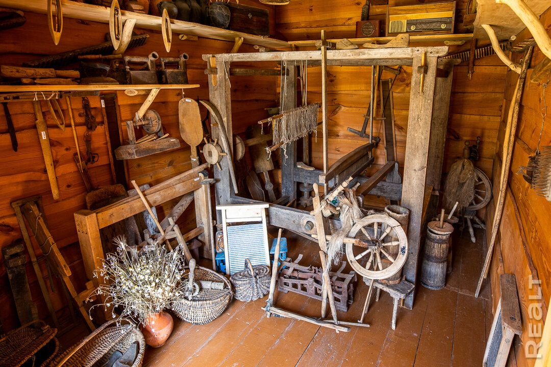 Предки Янины и ее мужа всегда работали на земле и занимались ремесленничеством. В подворье появился не только домик гончара, но и ткачихи и резчика. Старинные шкафы и утварь, печки, детская люлька, узорные половики и покрывала — здесь словно обитает дух белорусской деревни. И во всех этих домиках можно жить — есть спальные места и кухоньки.