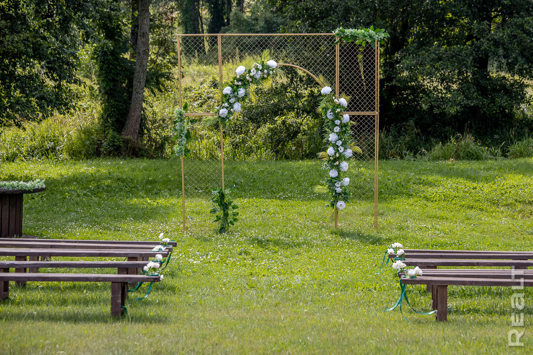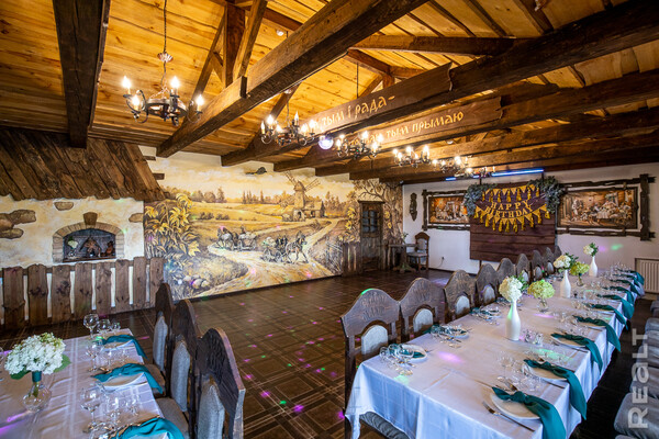 В фальварке своеобразный белорусский all inclusive. Молодые могут организовать выездную регистрацию на берегу реки и даже венчаться в местном костеле.