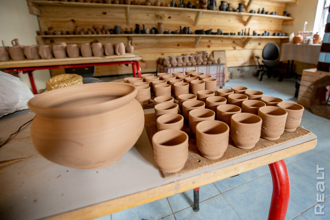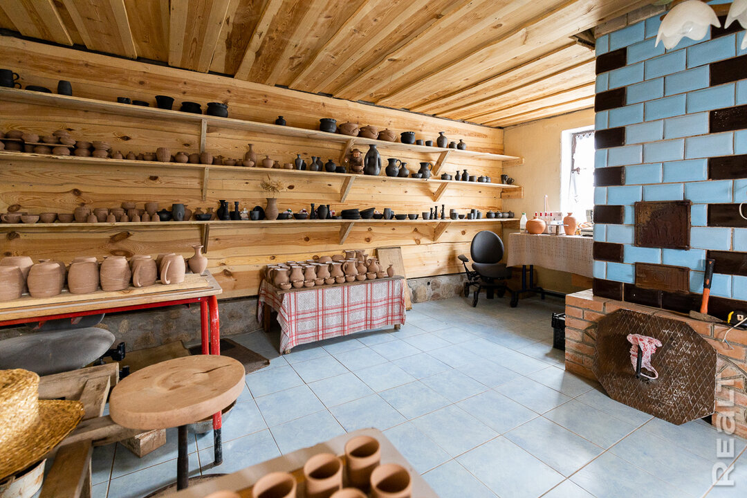 В домике гончара Янина показывает нам настоящий цех с печью для обжига, гончарными кругами и множеством посуды. Здесь мастер-классы для туристов и гостей проводит гончар.