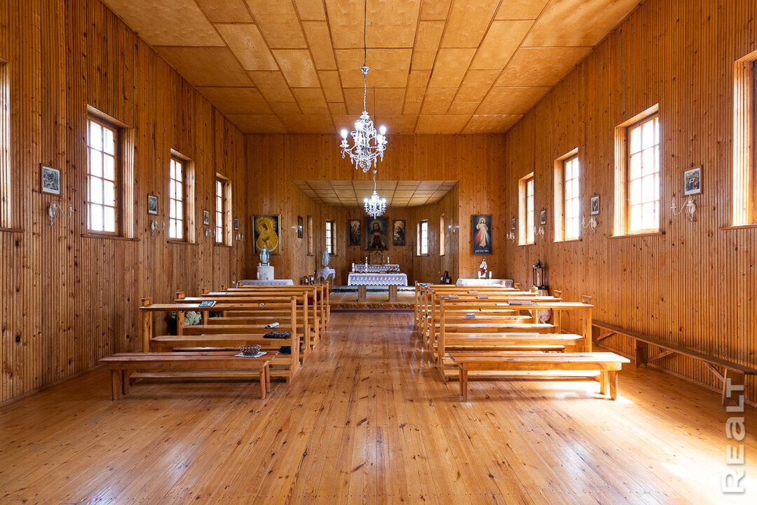 — В 1939 году местный ксендз занимался строительством костела. Что более удивительно, в годы войны ему помогали в этом немцы. Икона (Сердце Иисуса Христа), которую написал немец, сегодня занимает центральное место в костеле. В советское время в костеле был то зерноток, то спортзал. Уже в конце 60-ых ксендз Антони Филипчик реставрировал костел с нуля, и сегодня служба отправляется по воскресеньям.