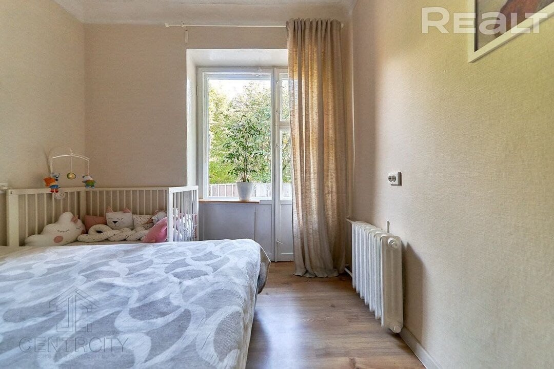 Квартира продается в доме по адресу улица Жилуновича, 30. Этот район застраивался после войны, в 1952 году. Дом кирпичный, трехэтажный. Проведен капитальный ремонт. Квартира расположена на втором этаже и имеет общую площадь 45 квадратных метров (жилая — 28, кухня — 5). Жилые комнаты изолированы, санузел раздельный, есть балкон.