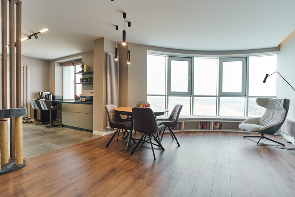 Два санузла и кухня-гостиная площадью 50 м². Посмотрите, как дизайнеры обустроили «трешку» в Минске для пары с ребенком и котом