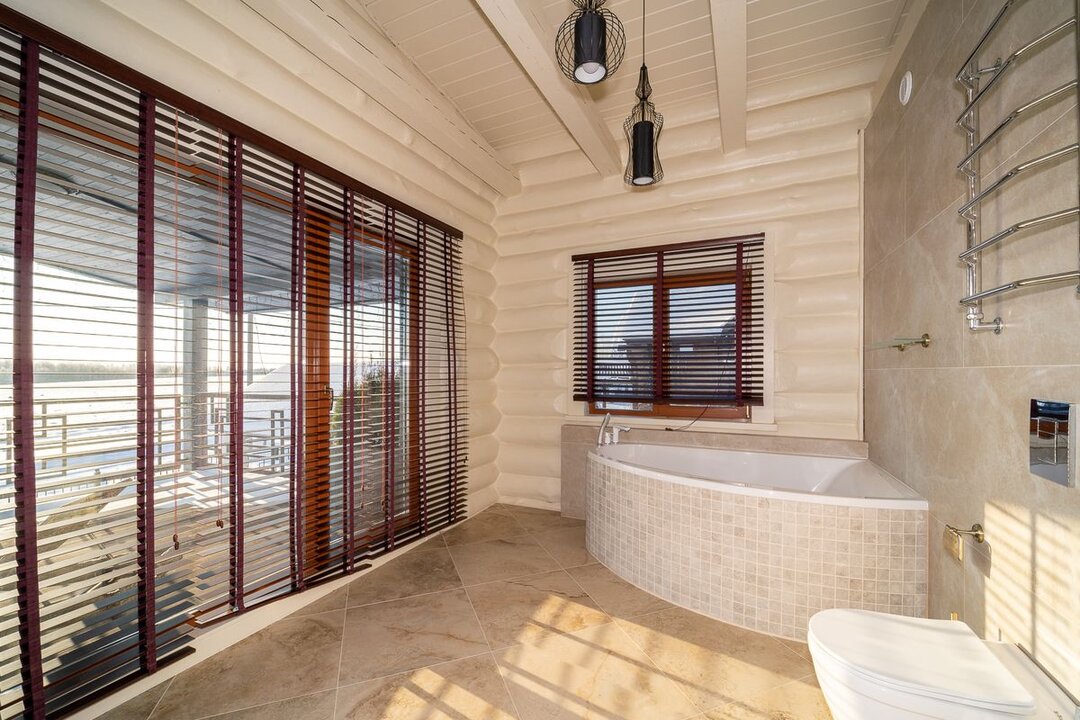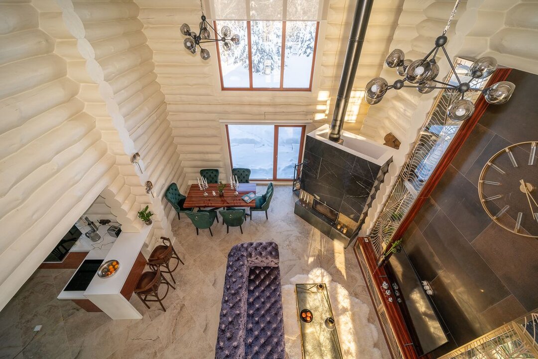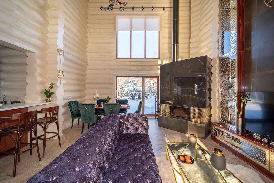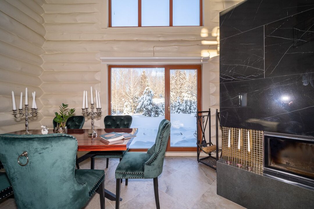 Нашли красивый деревянный дом под Минском: ручная рубка, камин, окна в пол в ванной с видом на горнолыжный курорт