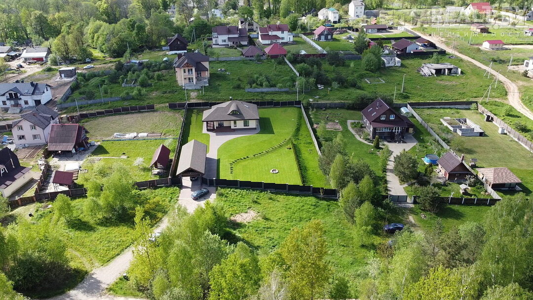 Участок большой — 21,16 сотка. Он полностью огорожен практичным металлпрофилем со столбами из бессера. Въездные ворота открываются автоматически. Кроме дома на участке построены гараж с навесом (38 м2 и 40 м2).