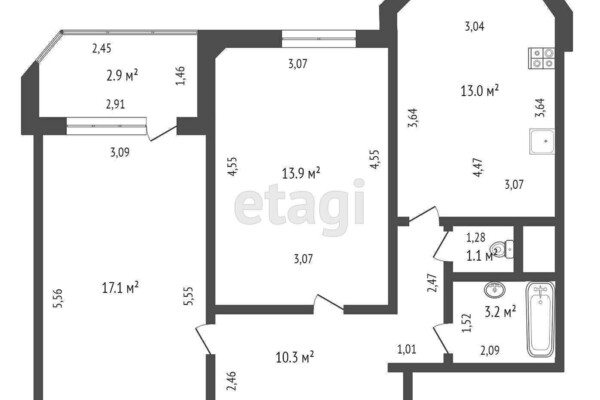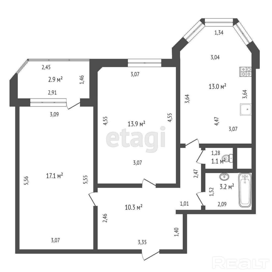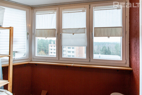 Дом девятиэтажный. Квартира расположена на 8-м этаже. Отсюда открывается отличный вид на лес. Дом панельный, построен в 2013 году. Планировка по улучшенному проекту — большая кухня 13 м². Общая площадь — 59 «квадратов». Здесь две непроходные комнаты, застекленная лоджия и раздельный санузел.