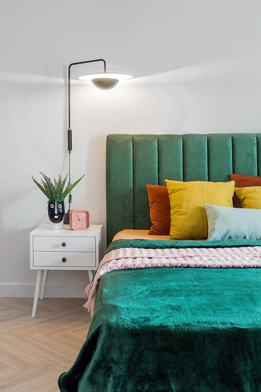 Однотонный светлый фон помог собрать все цвета в одну стильную картинку. Светлые стены украшают почти все помещения. Такое решение удобно еще и тем, что, если какие-то оттенки перестанут нравиться, атмосферу в комнате всегда можно изменить, просто поменяв постельное белье и покрывало.