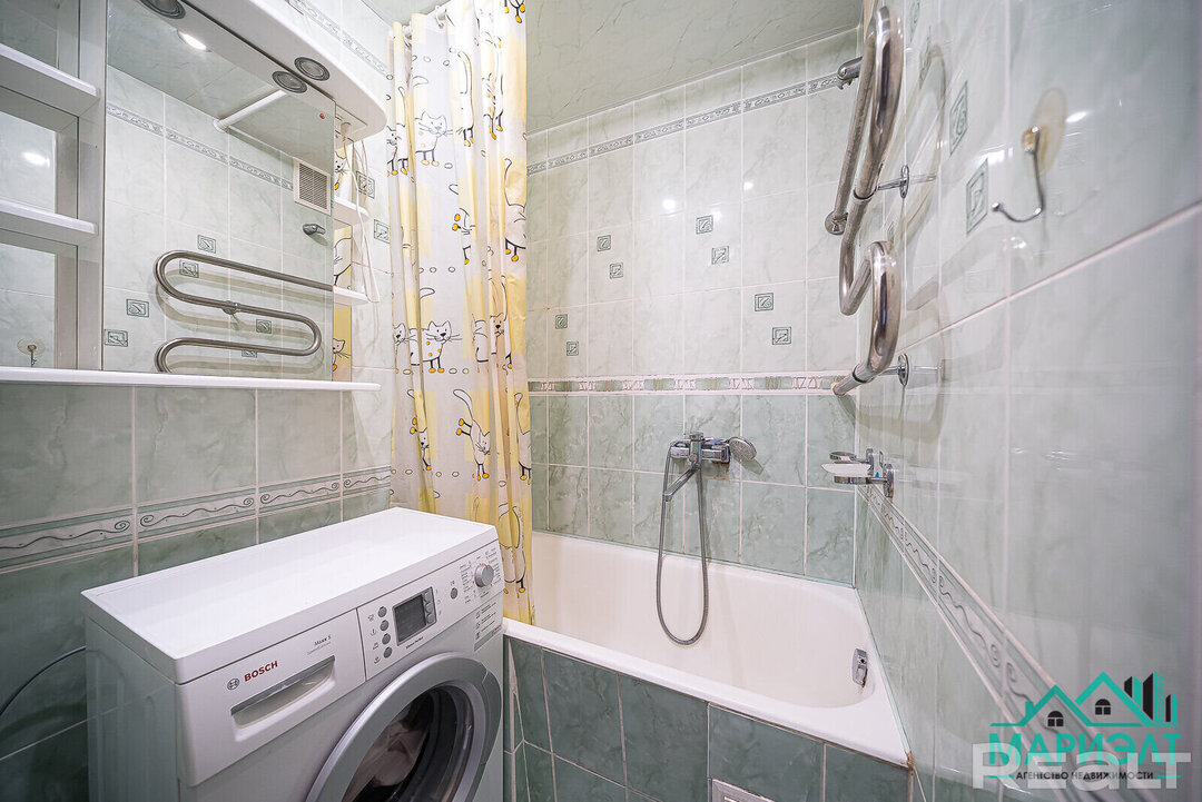 Квартира полностью готова к проживанию. В 2020 году в ней сделан ремонт. Установлены стеклопакеты, межкомнатные двери. Напольное покрытие — ламинат. Совмещенный санузел облицован плиткой. Также имеется душевая кабина, кухонный гарнитур с варочной панелью. Есть балкон.
