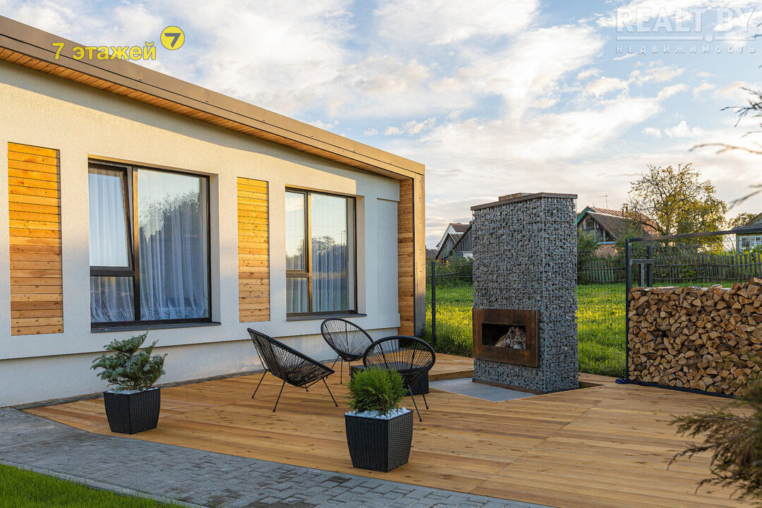 16396Красивых мест под Минском хватает, но самым известным и респектабельным считается побережье Минского моря. А если искать настоящий эксклюзив, то вам в Лапоровичи — в здешней застройке первой береговой линии не мало настоящих жемчужин, выставленных на продажу. Сегодня мы рассмотрим одно из интересных предложений на площадке Realt — компактный новый дом с финишной отделкой и мебелью.
