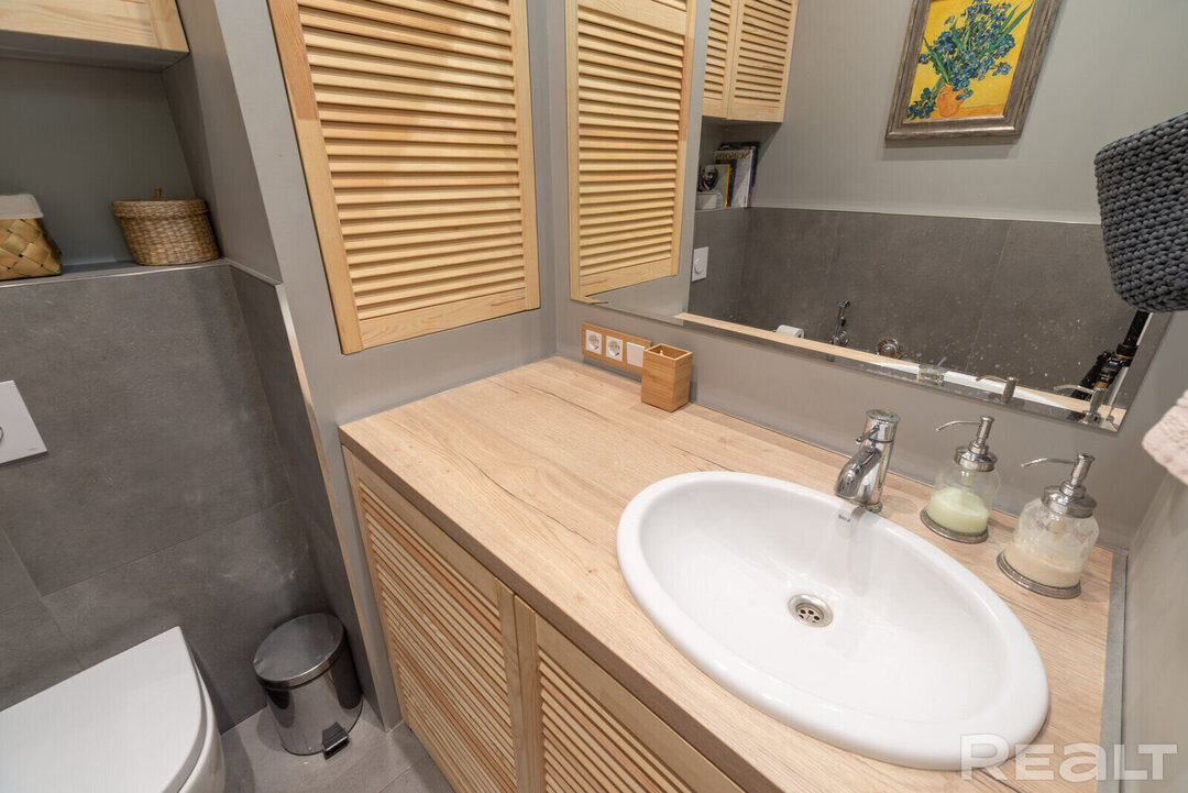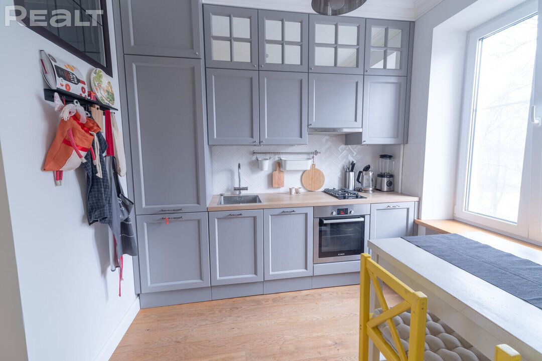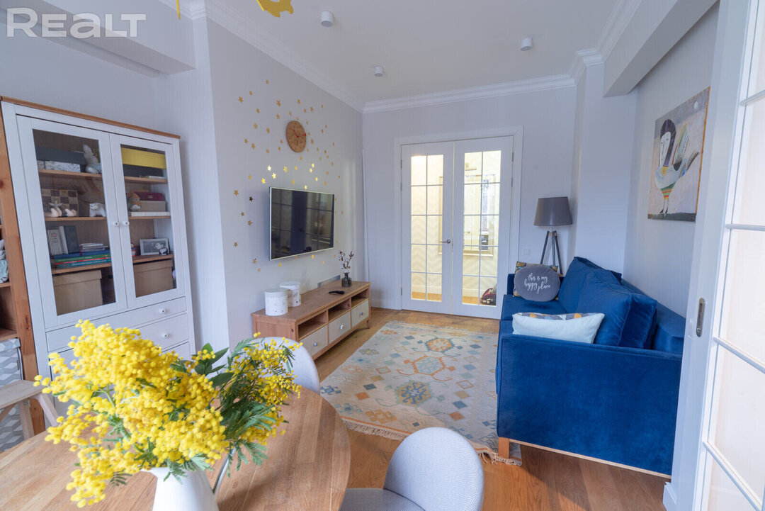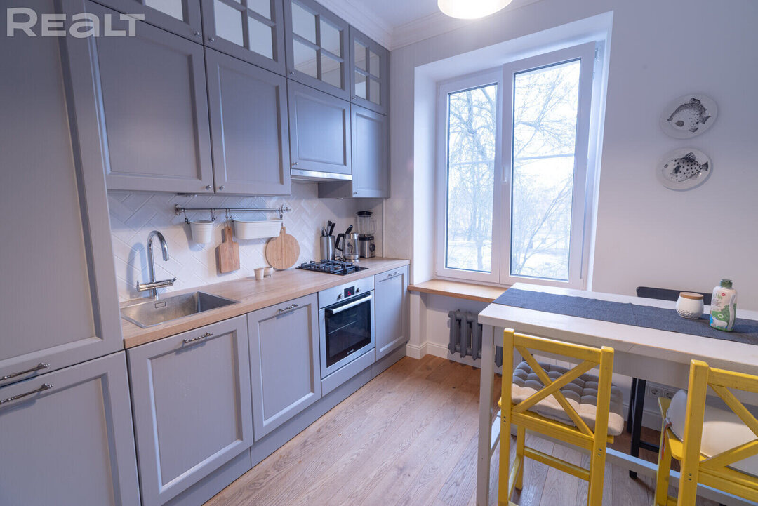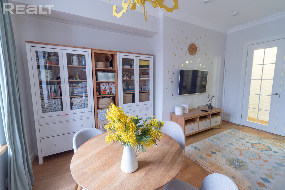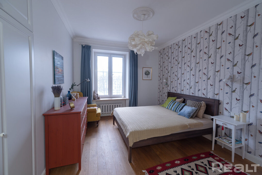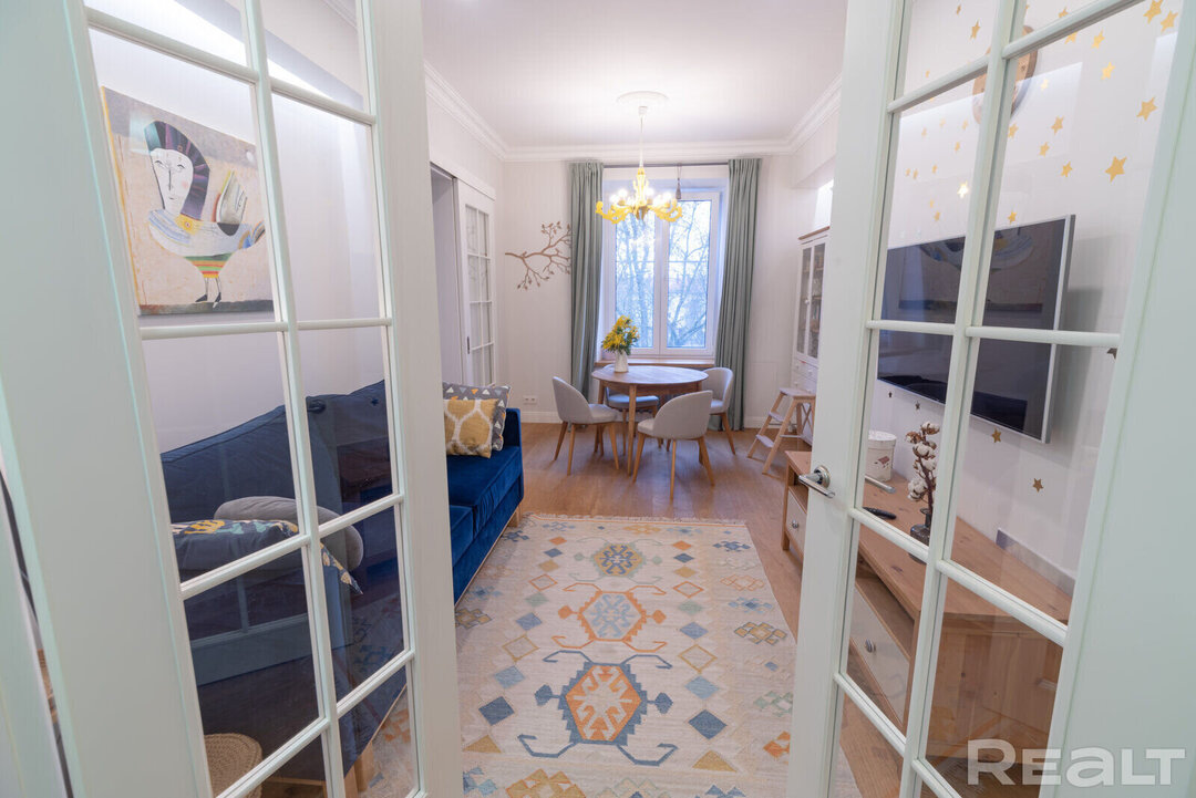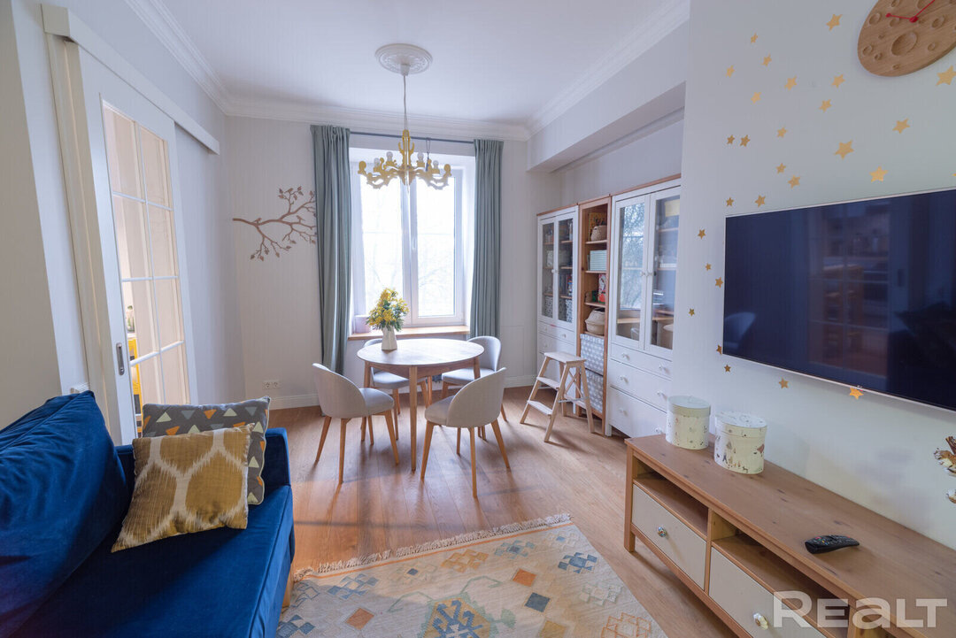 31105Эта квартира располагается по адресу Казарменный переулок, 5А. Рядом протекает Свислочь и возвышается стадион «Динамо». В двушке сделан хороший ремонт в скандинавском стиле. К тому же, буквально вчера эта квартира подешевела на 5 тысяч долларов. Сколько стоит уютная и домашняя сталинка?