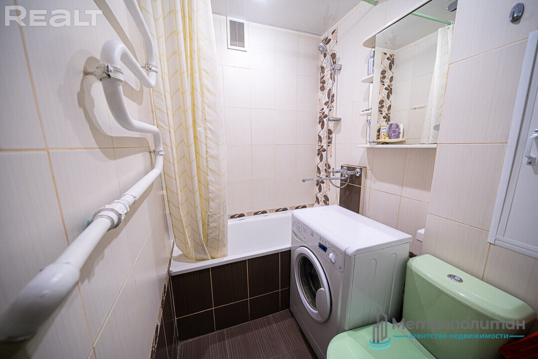Рядом с домом есть детские сады, школы, рынок, спортивный комплекс и магазины. Важно, что недалеко есть небольшая зеленая зона, а чуть дальше располагается парк Курасовщина.